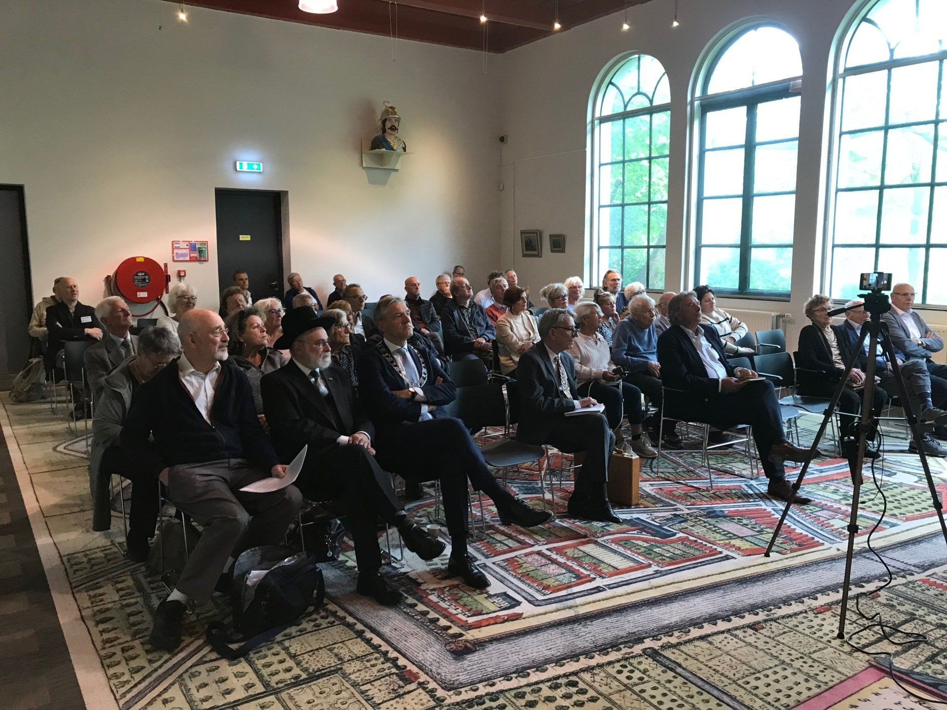 Ca 70 belangstellenden waren aanwezig waaronder de dochters van co-auteur Van Agt, nakomelingen van de familie Jacobson (de familie die de oudste begraafplaats stichtte in 1670) en ook de Israëlische consul Arjen Lont.